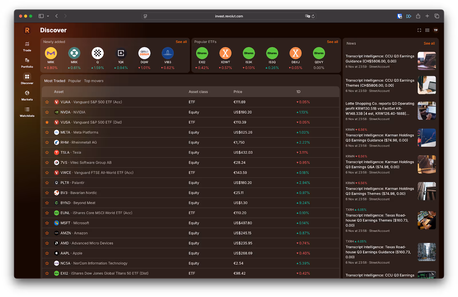 Para além da conta bancária, a Revolut também oferece uma secção de investimentos. A Revolut permite investir facilmente em ações, ETFs, criptomoedas, metais preciosos e, mais recentemente, por meio de um Robo-Advisor com carteiras automatizadas.