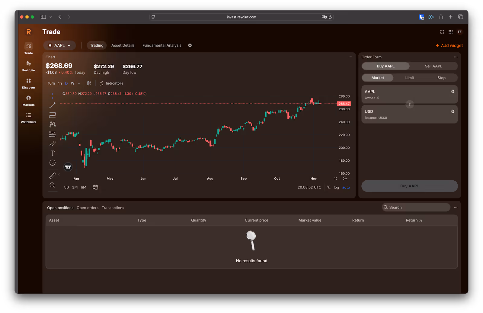 A Revolut oferece ainda o serviço Trading Pro por 4,99 € por mês, que te permite aceder a ferramentas de trading avançadas, ao apoio ao cliente dedicado e a análises mais complexas.