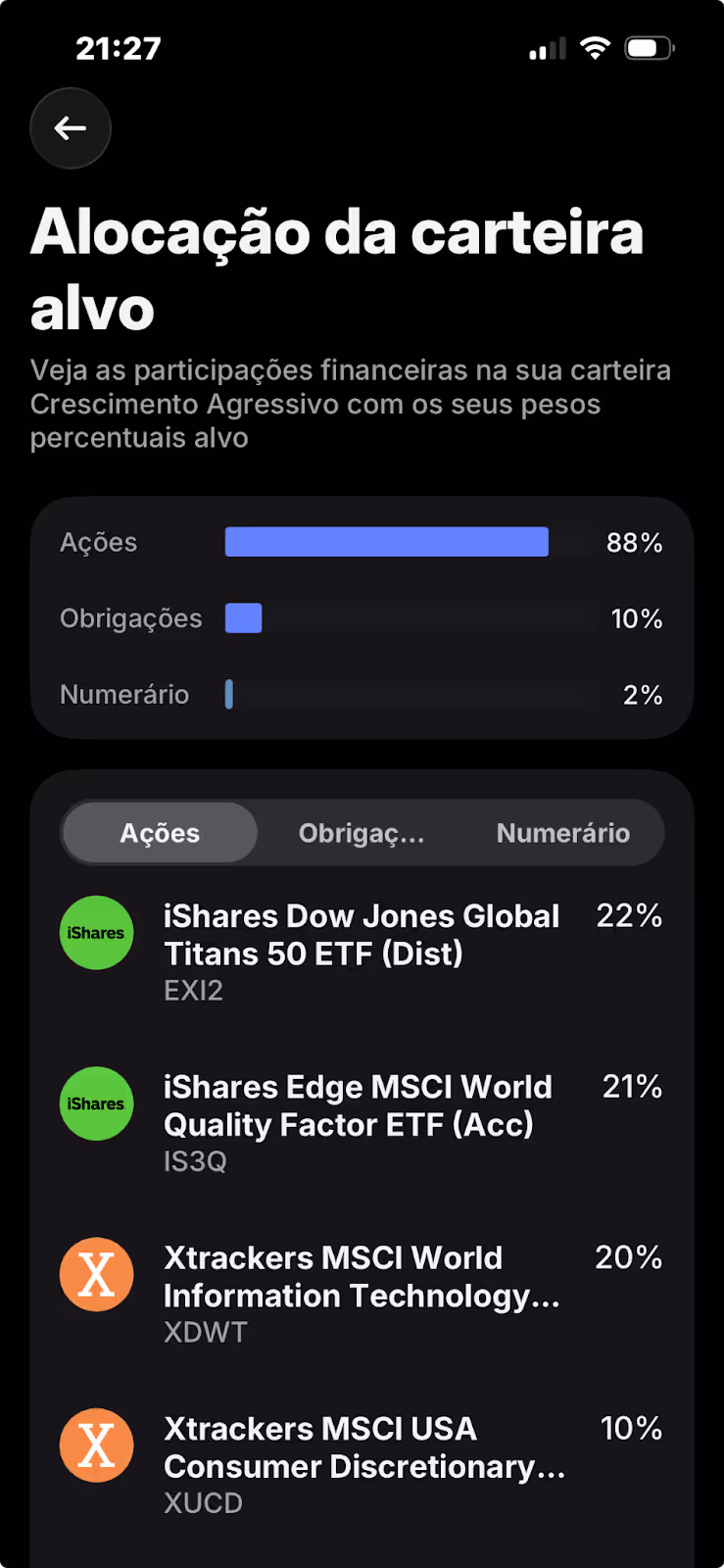 Nota: Ordens de compra recorrente em ETFs selecionados podem estar isentas de comissão, se usares o plano automático de investimento.