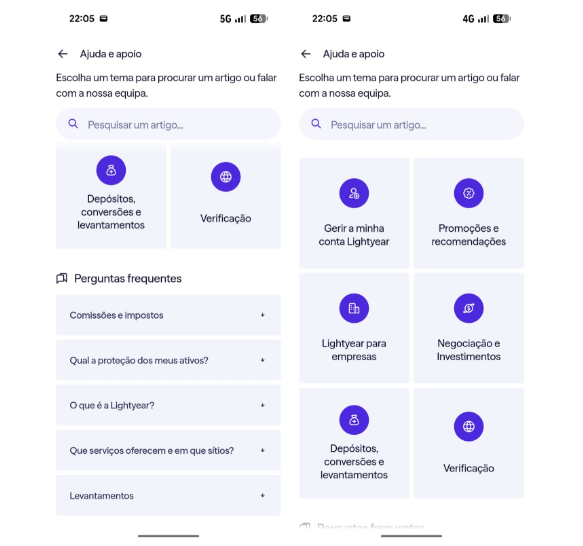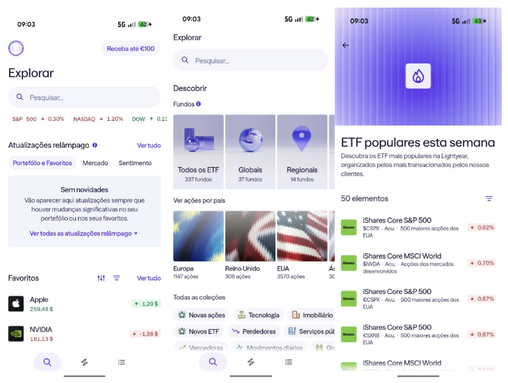 A aplicação móvel é o ponto forte da Lightyear. A navegação é fluida, a pesquisa de ativos é rápida e o processo de compra é simples, mesmo para quem nunca investiu antes.