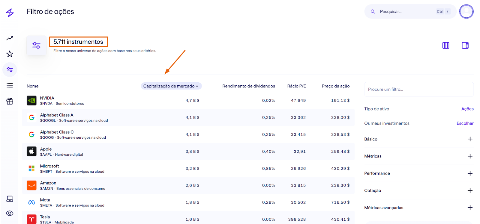 A Lightyear oferece ações, ETFs e obrigações. Para além disso, permite-te investir em ações fracionadas de alguns destes ativos. Por outras palavras, se uma ação tiver um custo de 100€, podes comprar apenas uma parte (uma fração), por exemplo, 10€, e ficar com 0,10 unidades dessa ação.