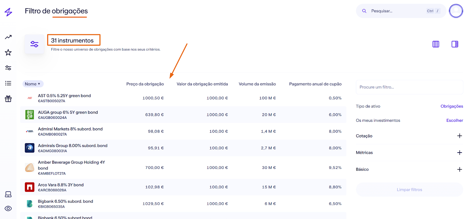 Apesar de haver muito pouco destaque às obrigações, quer no site, quer na própria plataforma, a Lightyear também oferece este tipo de investimento. De momento, tens pouco mais de 30 obrigações à tua escolha: