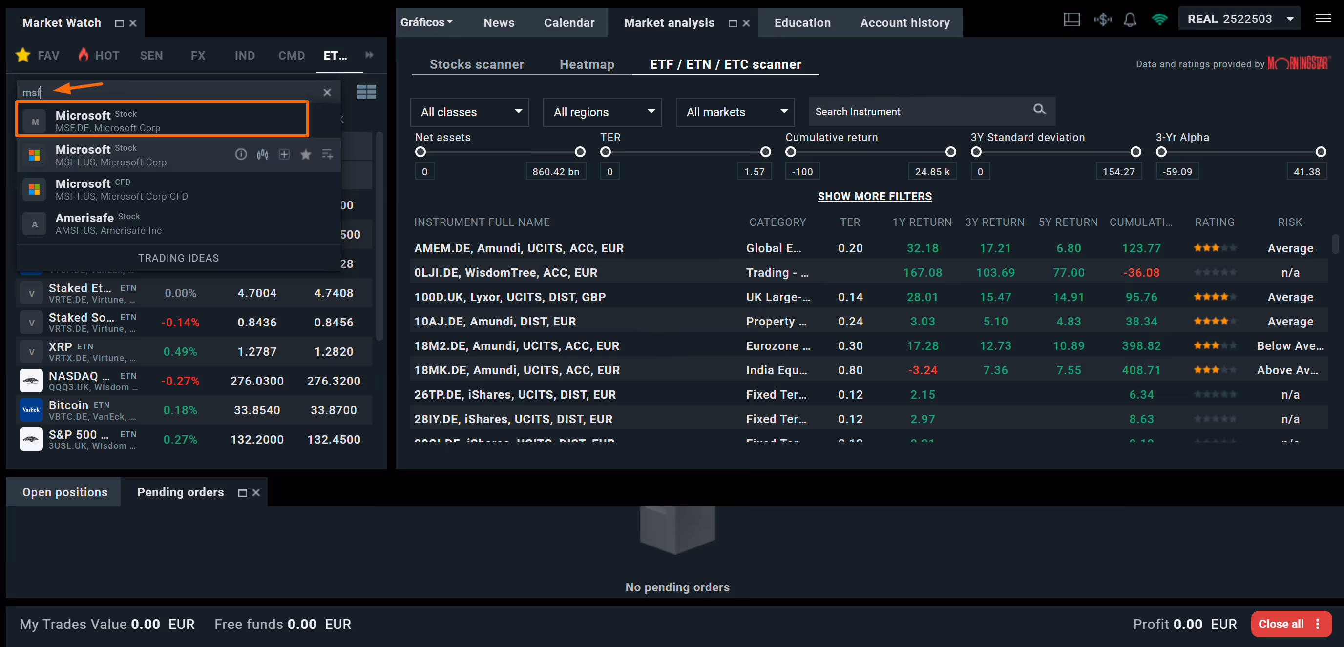 A primeira coisa que deves fazer é abrir conta numa corretora em Portugal. Para o nosso exemplo, iremos utilizar a XTB e daremos uma ordem de compra de uma ação da Microsoft (o processo seria semelhante para um ETF).
