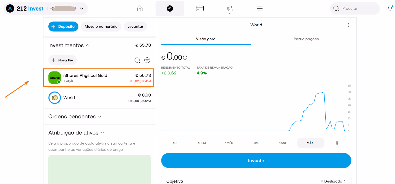 Após realizares a compra, vais poder encontrar esse investimento na secção de "Portefólio":