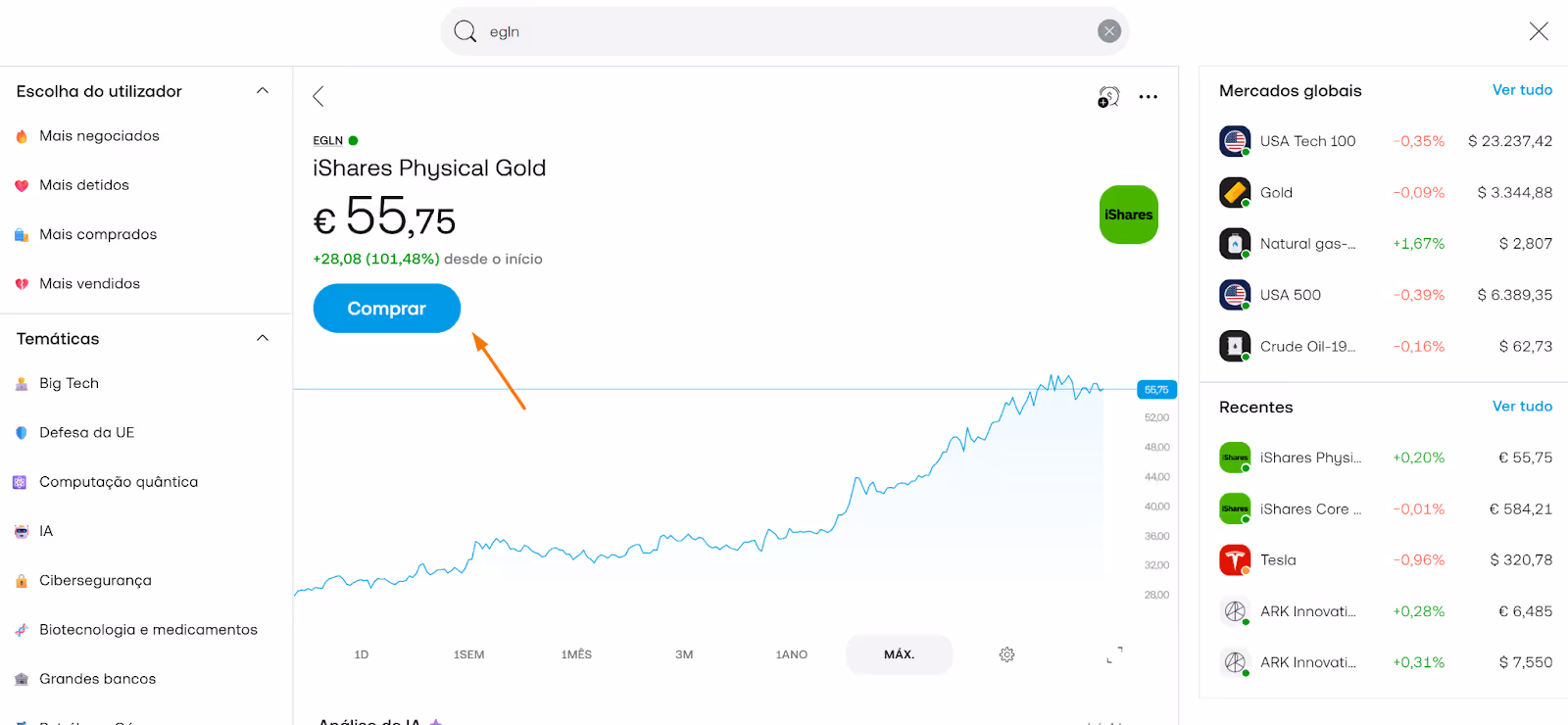 Tudo o que precisas de fazer é encontrar o ETF que pretendes na plataforma da corretora que escolheste e colocar uma ordem de compra.