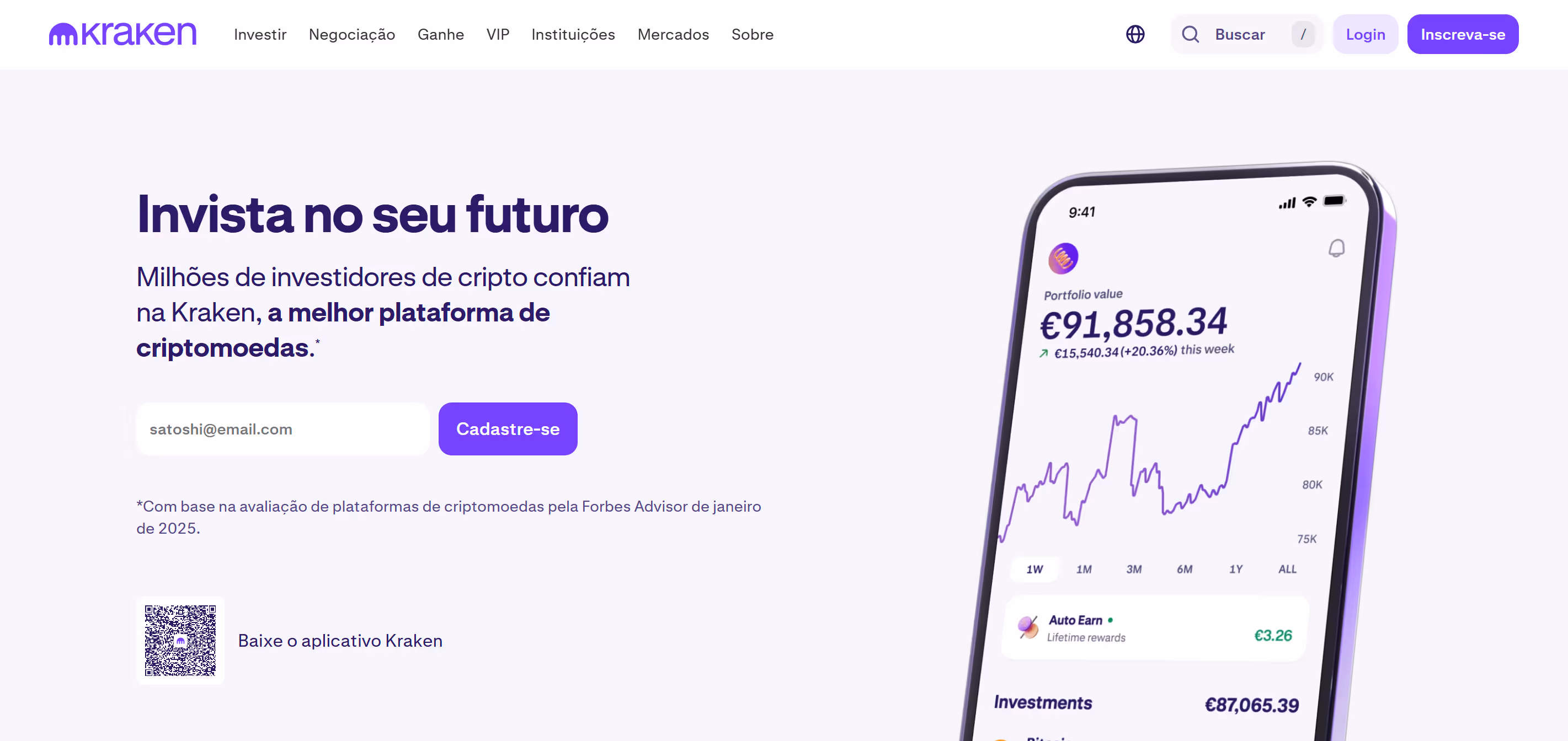 Se valorizas segurança e estabilidade, a Kraken pode ser uma plataforma de confiança, com uma longa reputação nos EUA. Oferece uma experiência de utilização clara e eficiente, ideal para quem procura gerir criptomoedas de forma simples e segura.