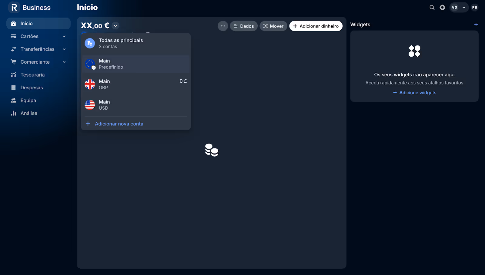 Um dos maiores pontos fortes da Revolut Business é a possibilidade de gerir contas em várias moedas na mesma plataforma.