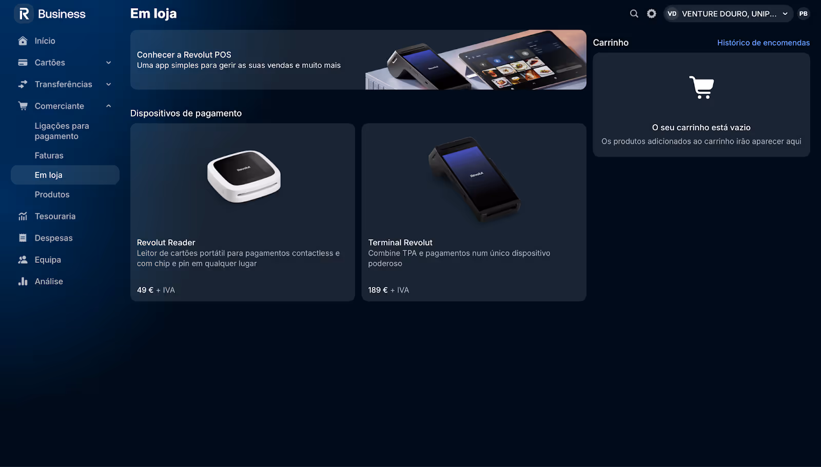 Aplica-se uma taxa de entrega de €4,99. Podem aplicar-se outras comissões, como custos de devolução e comissões de sistema. Comissões válidas a 12/2025 e sujeitas a alterações. Consulte a página de comissões da Revolut Business.