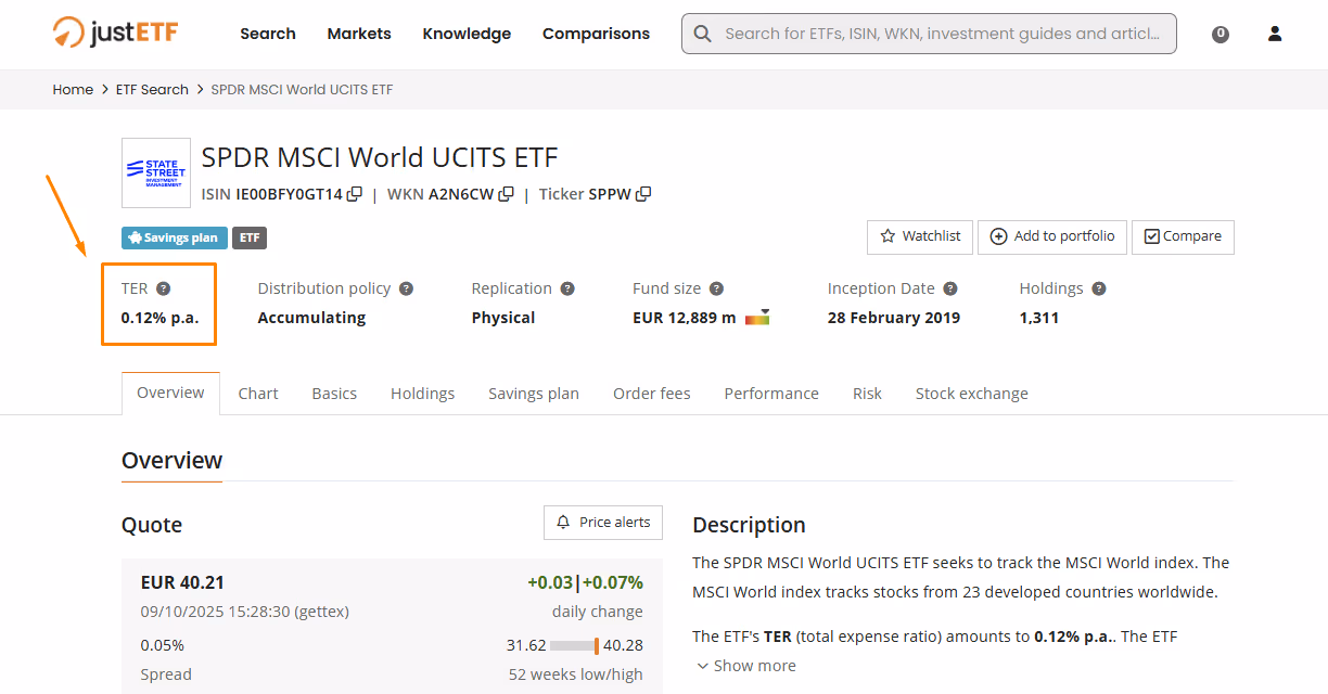 Para começar, temos as comissões do fundo. Vemos que a taxa de encargos correntes da classe founders é de 1,30%, não incluindo os custos de transação ( que acreditamos que sejam relativamente baixos). Já num ETF esse mesmo custo já anda nos 0,12%, como é o caso deste ETF da SPDR: