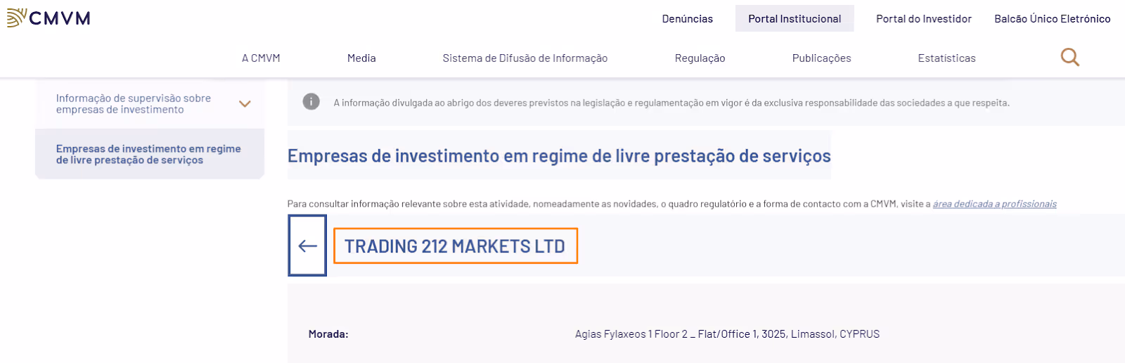 A Trading 212 está registada na CMVM em “regime de livre prestação de serviços” através da entidade “Trading 212 Markets Ltd”: