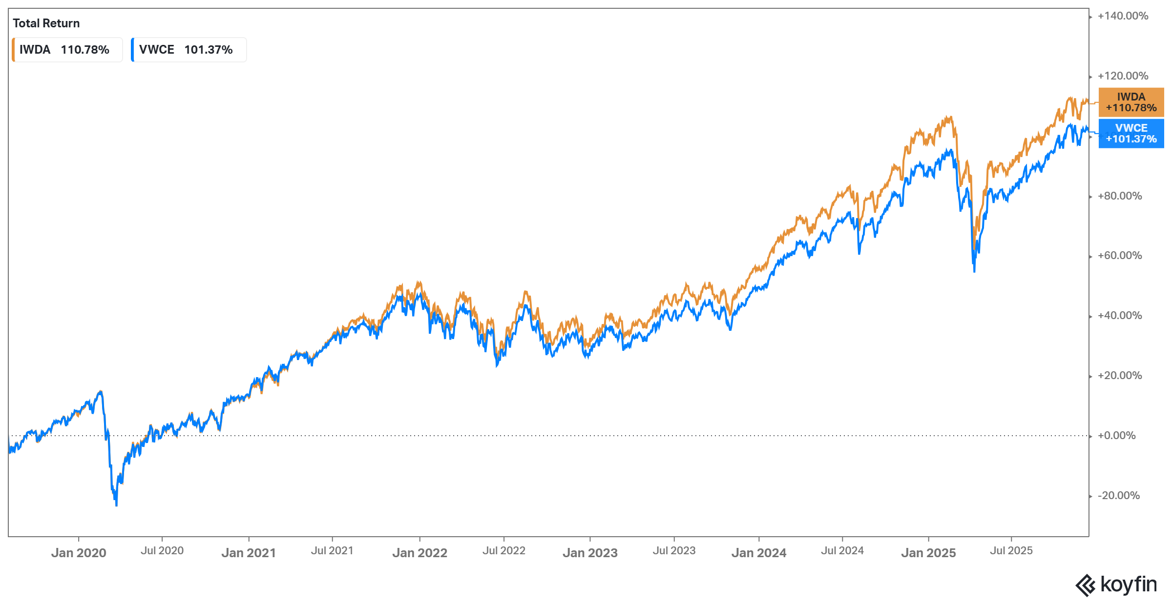 Como podes verificar, a performance do VWCE vs o IWDA foi similar, com uma pequena vantagem para o IWDA neste período.