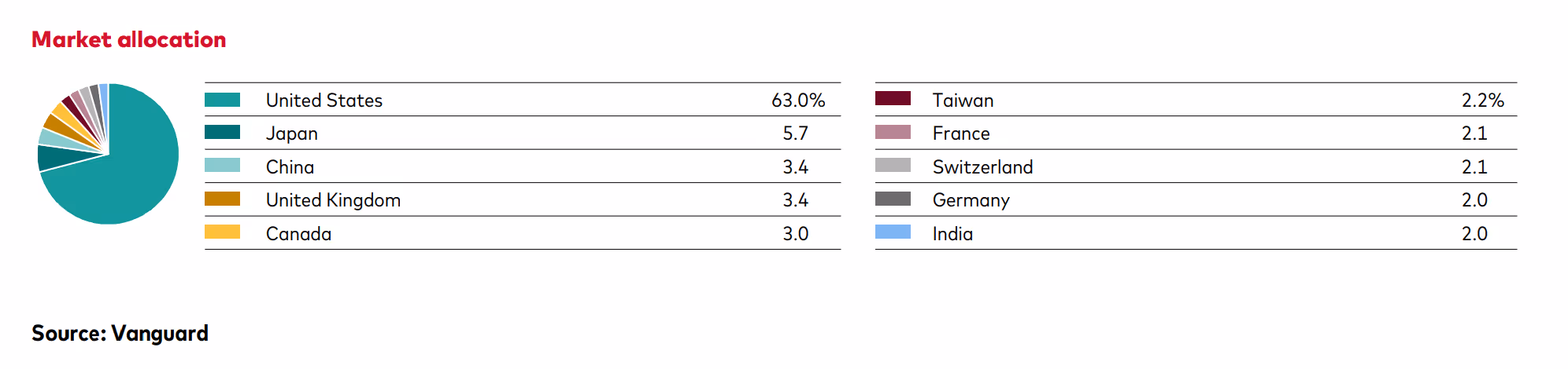Abaixo encontra-se a repartição geográfica do VWCE para os 10 principais países (segundo a factsheet):