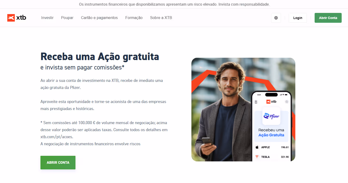 Atualização: Esta oferta terminou no dia 13 de Outubro de 2025. Caso a XTB decida recomeçar uma promoção similar, o artigo será devidamente adaptado.